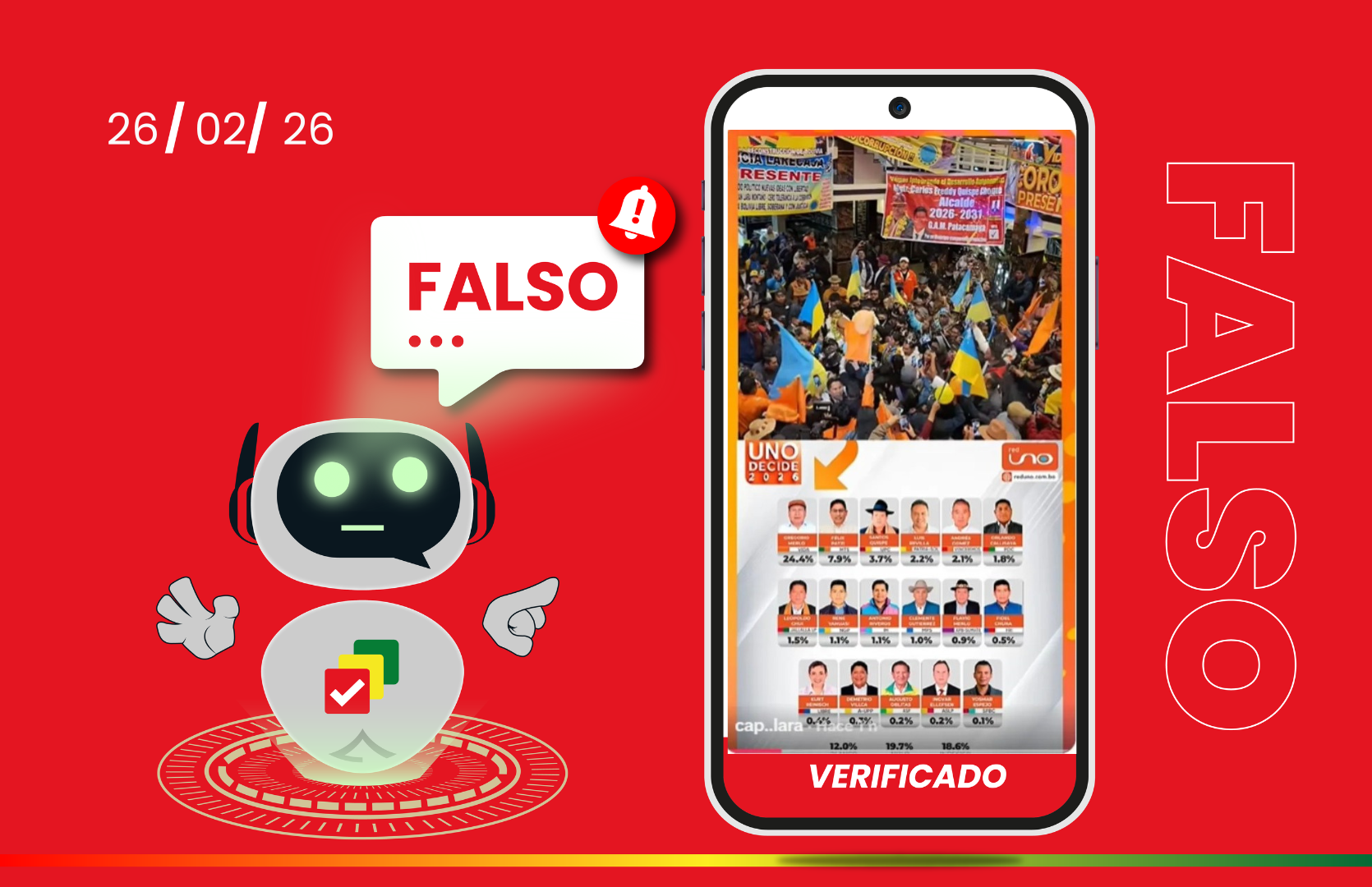 A través de TikTok, la cuenta @cap..lara está difundiendo encuestas atribuidas al medio de comunicación Red Uno. Dicha cuenta muestra que el candidato a la gobernación Freddy Merlo con el partido «VIDA» se encuentra encabezando la «primera encuesta de las elecciones» a la gobernación del departamento de La Paz con más del 24%. Sin embargo, esta encuesta es falsa.