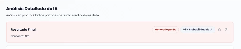 La etiqueta “deepfake detectado” implica que el sistema identificó el material como sintético, es decir, no corresponde a una grabación original o espontánea, sino a un audio alterado digitalmente.