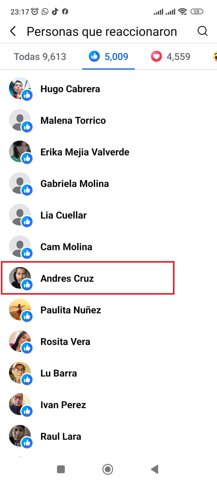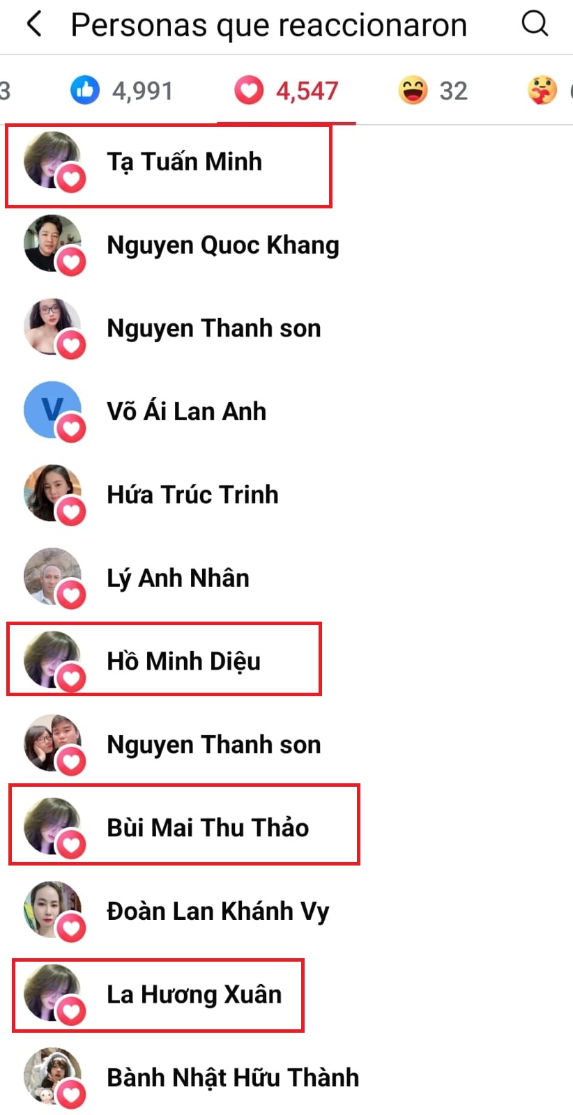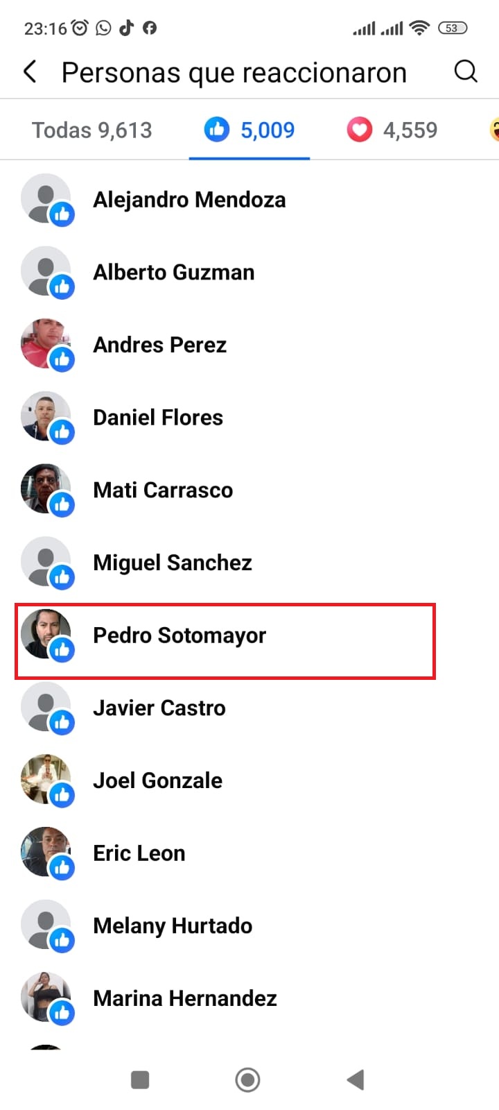Al revisar las interacciones, que alcanzaron las 9,5 mil reacciones, se observó que existen nombres extraños y escritos en otro idioma. Al revisar la interacción que hubo para el candidato por Patria Unidos (un total de 4.557), se hallaron cuentas con nombres como: Hoang Thu Hieu, Chu Long Phap, Pham Thuc Tai, Truong Hoa Nhung, entre otros. Es decir, nombres asiáticos.