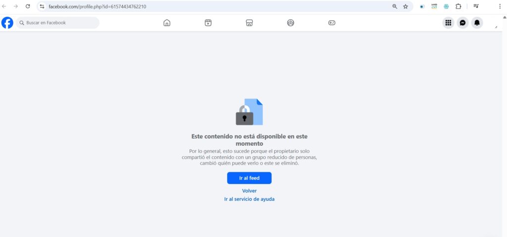 También se observó que, al darle clic a alguno de estos perfiles, no direccionan a ningún lado, ya que Facebook alerta que las cuentas han sido eliminadas; aun así, siguen siendo parte de la suma de «corazoncitos».