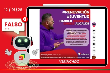 Un audio difundido en TikTok atribuye falsamente al candidato a la Alcaldía de Cochabamba una conversación privada. Sin embargo, el…