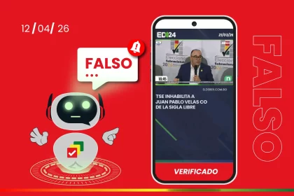 La pieza viral modifica el titular y la fecha de un video original de El Deber para difundir una inhabilitación…