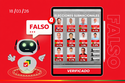El contenido presenta resultados de intención de voto sin ficha técnica ni respaldo metodológico y no fue difundido por ninguna…