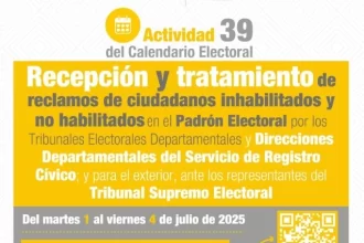 El TSE publica la lista de inhabilitados para votar y recibirá reclamos hasta el viernes 4 de julio