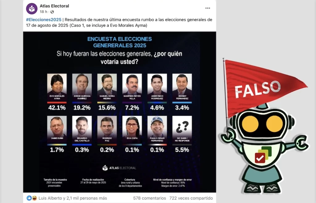 Encuesta de Atlas Electoral que muestra a Evo Morales liderando la intención de voto es falsa