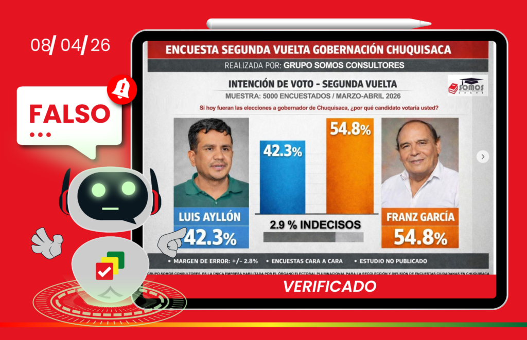 Encuesta que muestra a Franz García liderando intención de voto en Chuquisaca es falsa