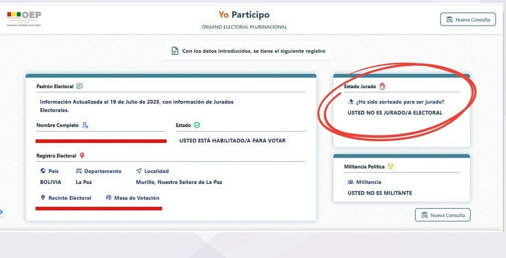 El OEP recuerda a la ciudadanía la importancia de verificar si ha sido seleccionada como jurada o jurado electoral, dado que el cumplimiento de esta función es una obligación cívica fundamental para fortalecer la democracia.
