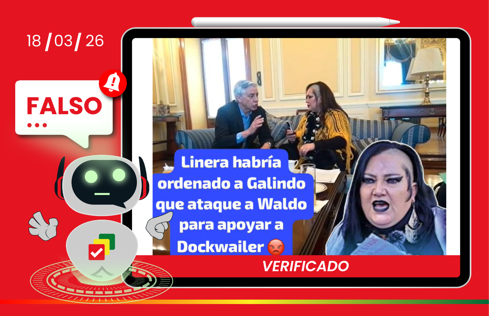 Circula en WhatsApp un video que asegura que la activista feminista María Galindo se reunió con el exvicepresidente Álvaro García Linera para coordinar un ataque contra Waldo Albarracín, candidato a la Alcaldía de La Paz por la agrupación Venceremos. Según el mensaje, el objetivo sería favorecer a César Dockweiler, aspirante a la silla municipal por Innovación Humana. Sin embargo, esta publicación es falsa.