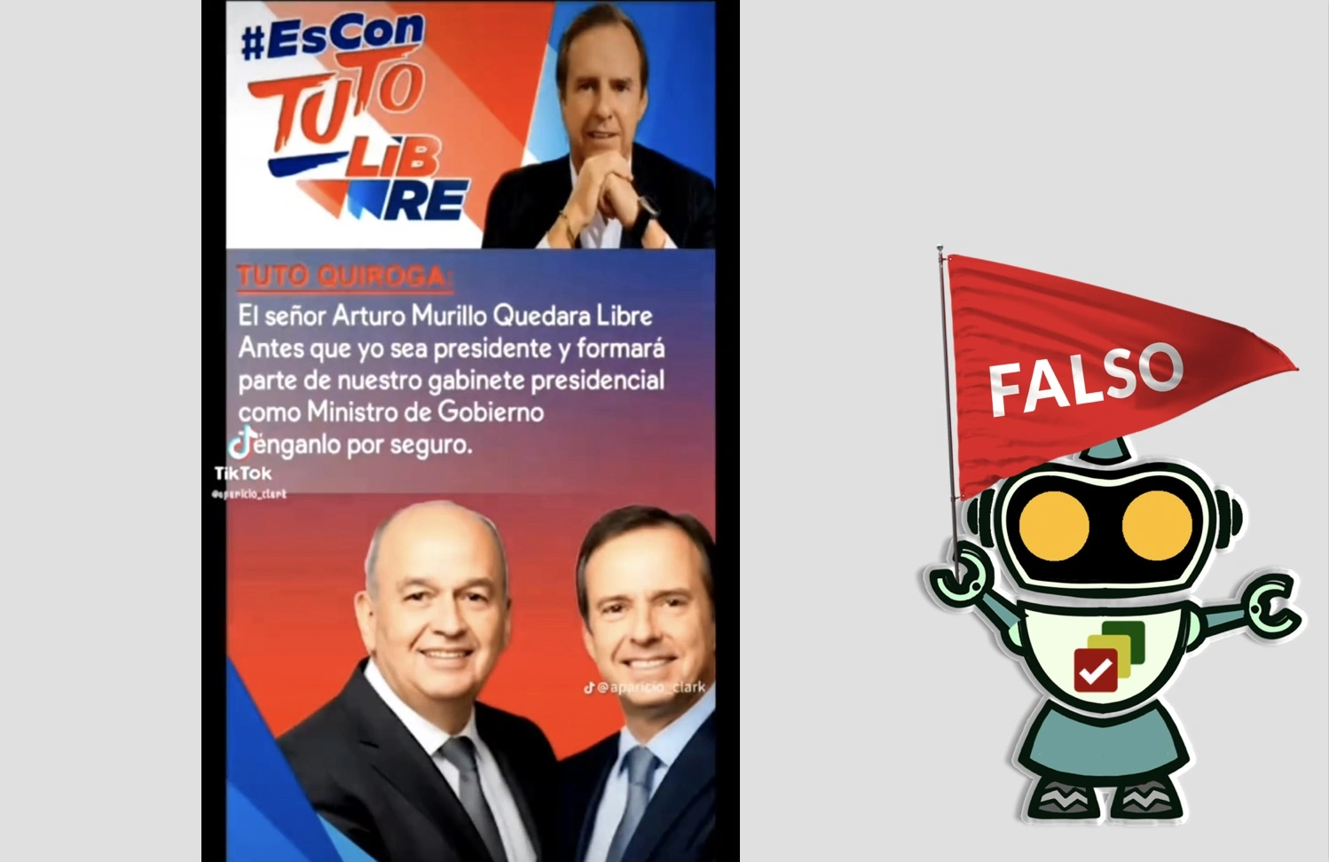 Un video  muestra un comunicado a nombre de Alianza Libre, cuya cita textual anuncia que el exministro Arturo Murillo Prijic quedará en libertad si Jorge Tuto Quiroga Ramírez asume la presidencia, además que será parte del próximo «gabinete»; sin embargo, el aviso es falso. Se trata de una «guerra sucia», dijeron desde la organización política.