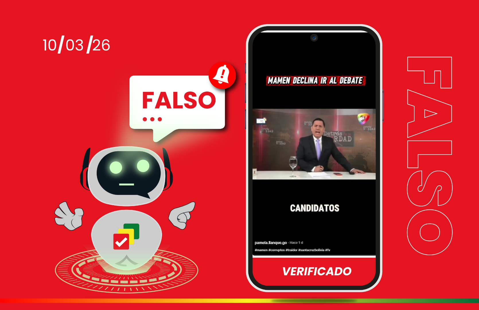 En TikTok circula un video que afirma que el candidato a la Alcaldía de Santa Cruz por la agrupación VOS, Manuel «Mamén» Saavedra, decidió no asistir al debate electoral convocado por el Tribunal Electoral. Sin embargo, el contenido presenta indicios de manipulación mediante inteligencia artificial y el propio candidato señaló, en declaraciones a medios de comunicación, que participa en distintos espacios de debate.