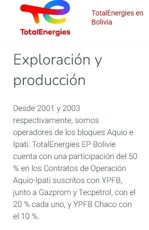 El acuerdo con la empresa TotalEnergies, quien explora y produce en Aquio Incahuasi, se hizo en 2001, año en el que Jorge Quiroga era presidente.