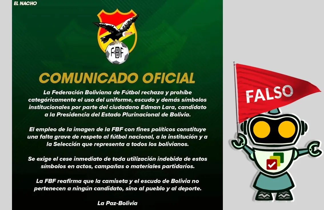 El 5 de octubre, durante el Debate vicepresidencial organizado por el Tribunal Supremo Electoral (TSE), Edmand Lara participó vistiendo una camiseta de la selección boliviana. Poco después, comenzó a circular el falso comunicado atribuido a la FBF, presuntamente en rechazo al uso del uniforme.