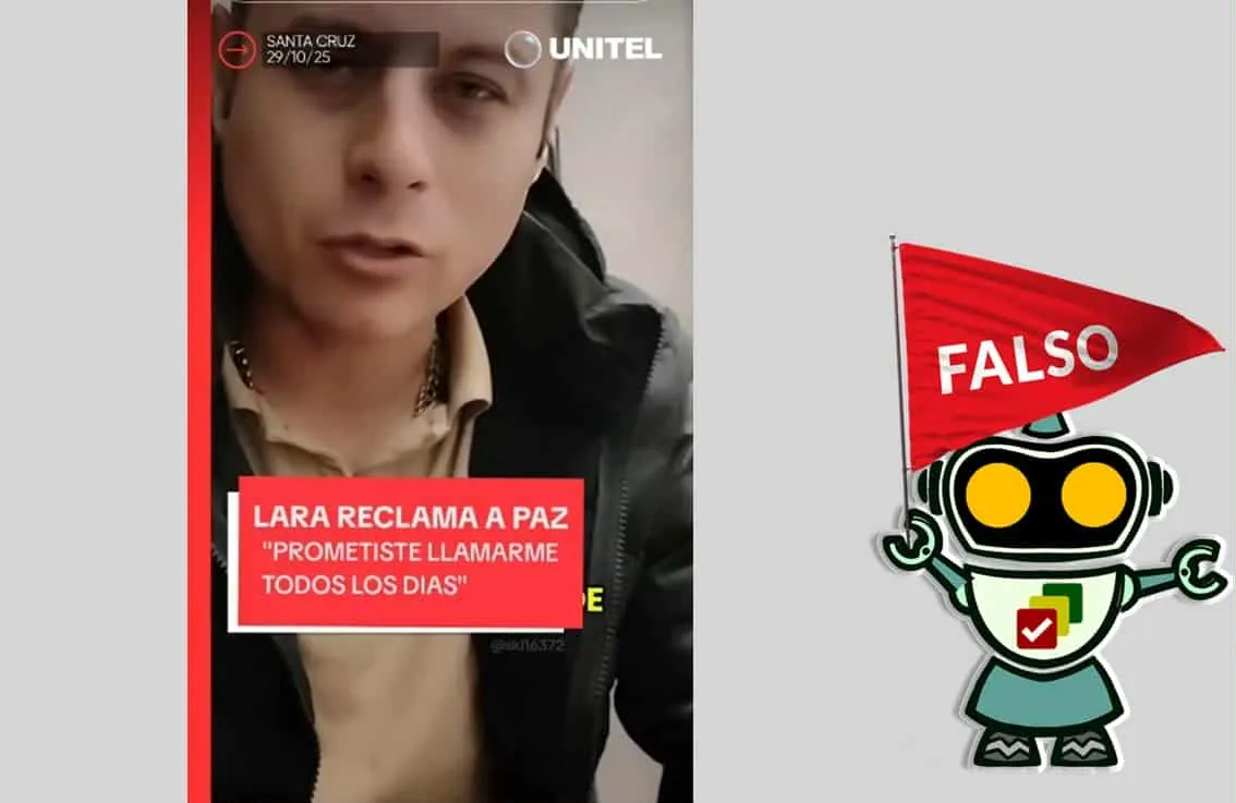 A través de TikTok circula un video con la línea gráfica del medio Unitel, en el que se muestra al vicepresidente electo Edmand Lara reclamando a Rodrigo Paz por no cumplir la promesa de llamarle todos los días. Pero este contenido es falso porque el material original no tiene relación con el tema que se le atribuye.