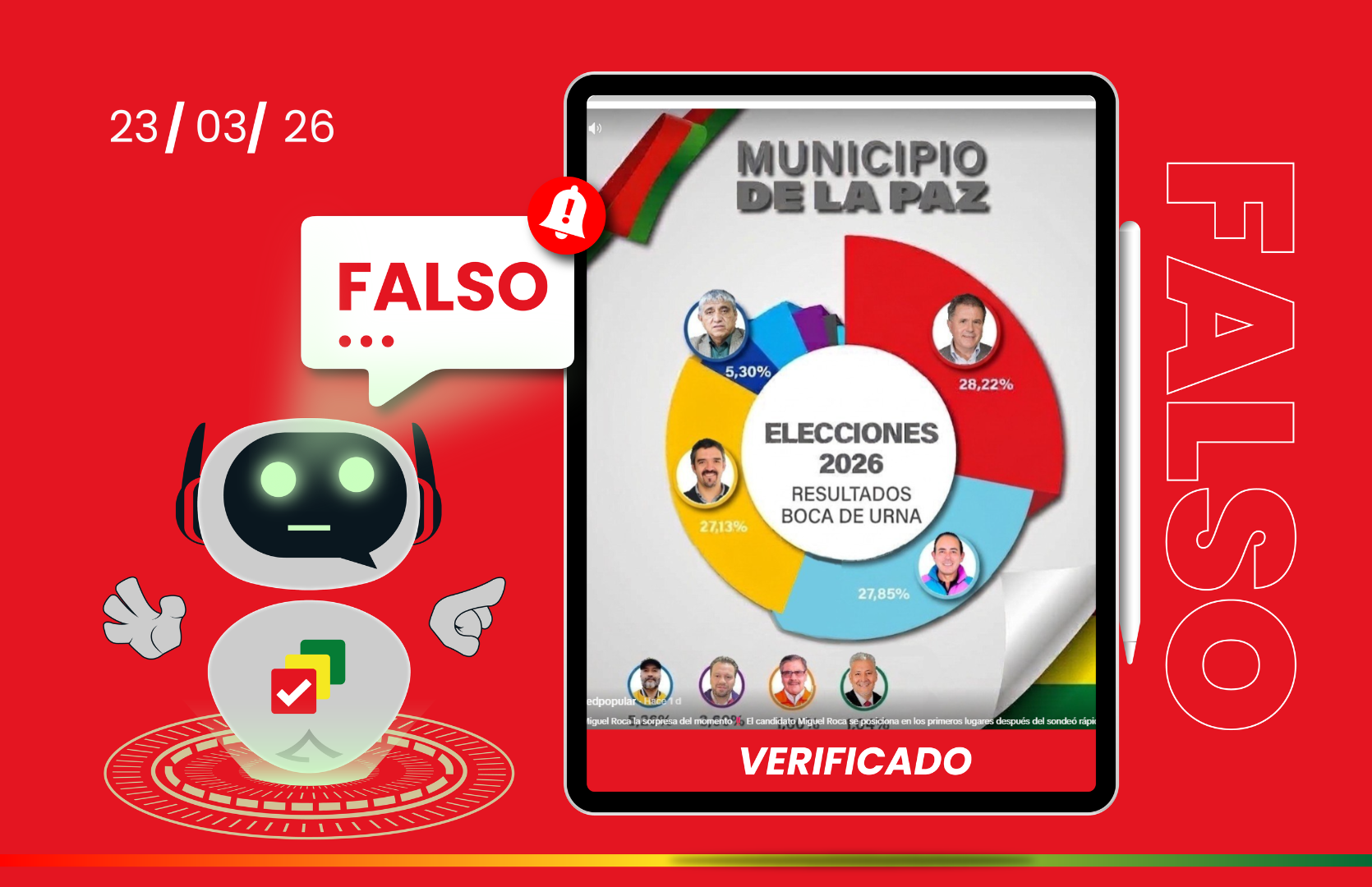 Por tanto, los resultados de “boca de urna” difundidos en redes sociales sobre la elección en el municipio de La Paz son falsos. No provienen de una entidad habilitada, no cumplen con la normativa electoral, carecen de sustento metodológico y presentan inconsistencias frente a los datos oficiales del sistema preliminar del Órgano Electoral.