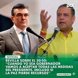 Una publicación difundida en Facebook por la página “Bolivia es mi vida” muestra una imagen con el logo de Pat y el titular: “Revilla sobre el 50/50: cuando yo sea gobernador, vamos a aceptar todas las medidas del presidente, incluso si La Paz pierde recursos”. La información es falsa. La revisión de entrevistas, publicaciones de medios y páginas oficiales confirma que no existe registro de que el exalcalde y actual candidato a alcalde de La Paz, Luis Revilla, haya hecho esa declaración.