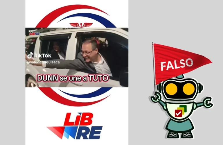 Dunn aclaró que el video corresponde a otro contexto y que fue filmado antes de las elecciones generales del 17 de agosto. En la cuenta de TikTok @saludchuquisaca se publicó un video donde se afirma que el exprecandidato Jaime Dunn se unió a la campaña del aspirante a la presidencia Jorge Tuto Quiroga (Alianza Libre). … Sigue leyendo Jaime Dunn no se unió a la campaña de Jorge Tuto Quiroga