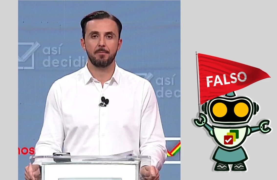 Durante el debate vicepresidencial realizado por Unitel, el candidato de la Alianza Libre, Juan Pablo Velasco, dijo que su compañero de fórmula y candidato a la presidencia Jorge Tuto Quiroga no fue parte del gobierno transitorio de Jeanine Áñez. Bolivia Verifica califica su discurso como falso porque Quiroga sí ocupó un cargo designado por la propia expresidenta.