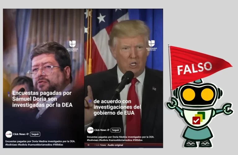 En el audiovisual también se vincula al empresario con el crimen organizado de donde habría obtenido ganancias ilícitas, pero no existe evidencia.ContentsLa cadena televisiva desmienteSin evidencia A través de la cuenta Click News, en Facebook y TikTok, se difunde un video que indica que la Administración para el Control de Drogas (DEA por sus siglas … Sigue leyendo No, este video que denuncia a Samuel Doria Medina por pagar encuestas no le pertenece a Univisión