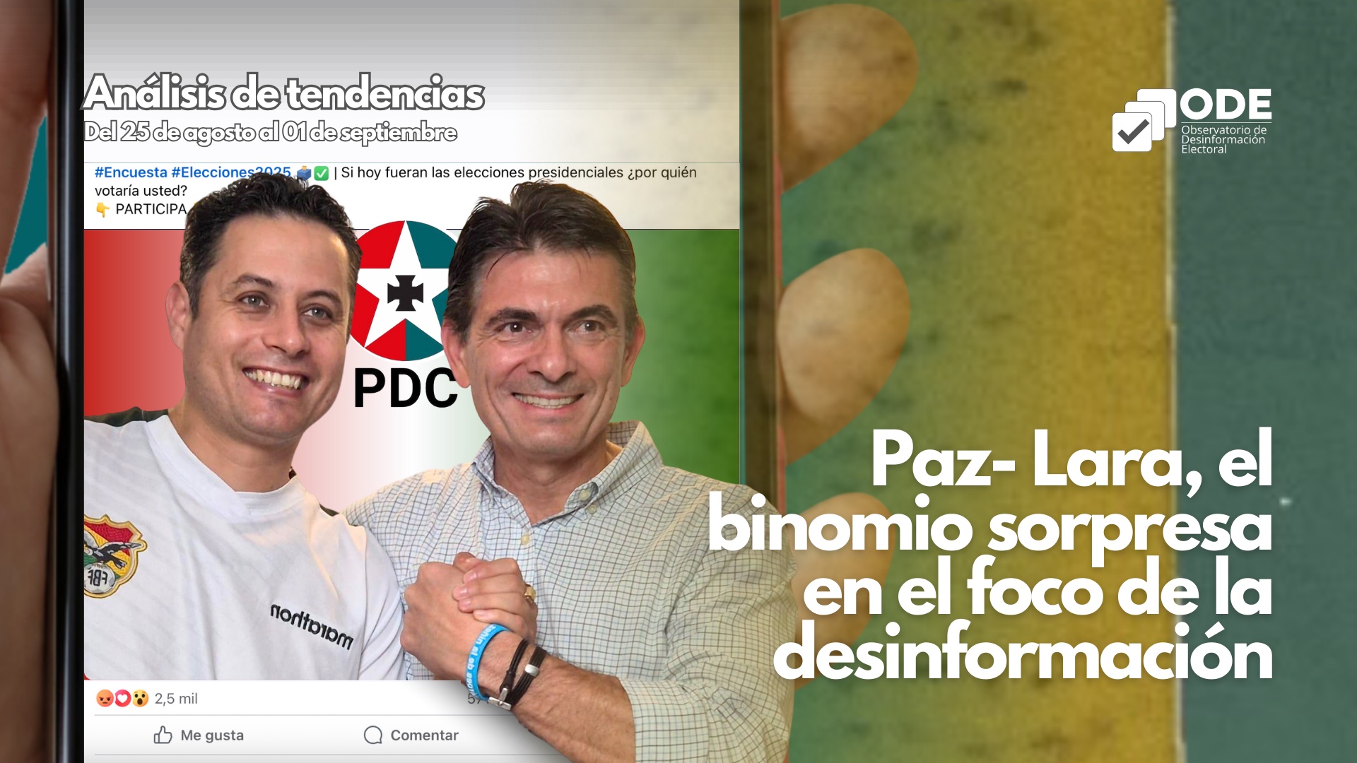 El sorpresivo resultado de las elecciones desató el interés mediático en los candidatos del Partido Demócrata Cristiano (PDC), Rodrigo Paz Pereira y Edmand Lara Montaño, pero también una ola de bulos que buscó desacreditar sus postulaciones. Aunque en menor medida, Jorge Tuto Quiroga Ramírez de Alianza Libertad también estuvo en la mira de la desinformación.