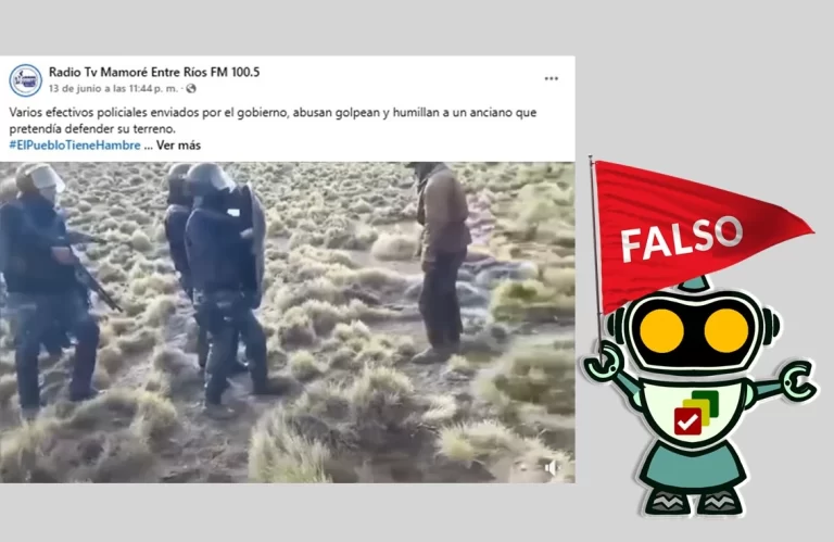 En realidad, las imágenes fueron grabadas en Argentina durante un conflicto entre una empresa minera y comunarios que defendían sus tierras. Este bulo circula en un contexto de alta tensión político-electoral.ContentsPublicación de Radio MamoréImágenes antiguas y de otro paísVersión de radio Mamoré “Varios efectivos policiales enviados por el gobierno, abusan, golpean y humillan a un … Sigue leyendo Radio Mamoré difunde un video antiguo y de otro país como si se tratara de Bolivia