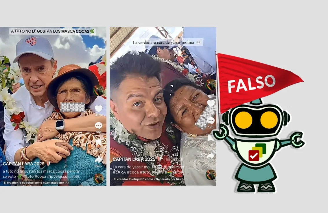 En TikTok (1 y 2) y en Facebook (1) circulan dos videos en donde se observa al candidato a la presidencia Jorque Tuto Quiroga (Alianza Libre) y al exintegrante de la Resistencia Juvenil Cochala (RJC) Yassir Molina a quienes se les escucha expresarse de manera discriminatoria. No obstante, estos clips son falsos, ya que fueron generados con herramientas de inteligencia artificial (IA) a través del uso de fotografías reales y crear este material.