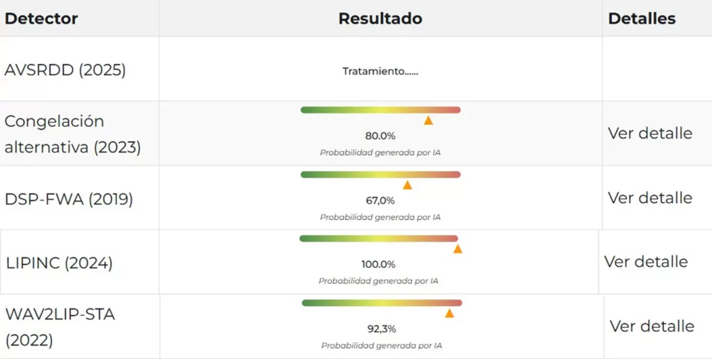 Por otro lado, Bolivia Verifica envió el audio observado al Grupo de Respuesta Rápida de Deepfakes de Witness, quienes realizaron un estudio técnico empleando herramientas de código cerrado. Este equipo de trabajo indicó que “analizó el audio y encontró signos de generación o manipulación de IA”. Esto significa que el audio fue creado de forma digital, por lo tanto, es falso.