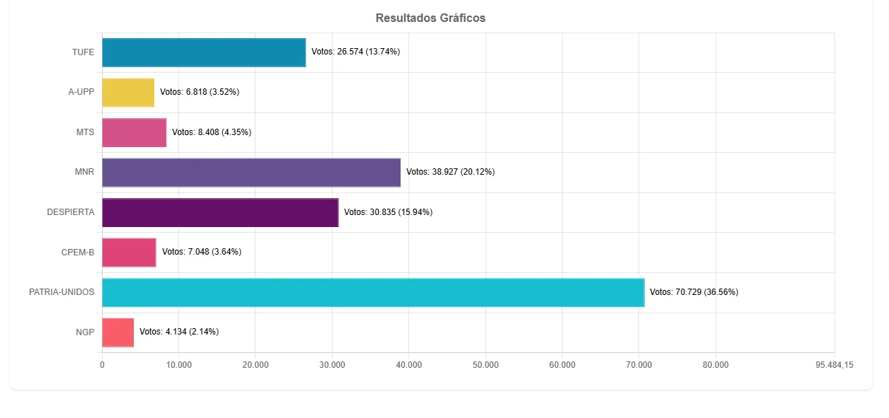 Por lo tanto, el gráfico que circula en redes sociales con supuestos resultados preliminares en Chuquisaca es falso. Fue difundido fuera del horario permitido, no fue publicado por Red Uno y no cuenta con respaldo en fuentes oficiales.