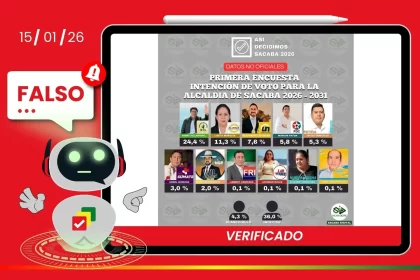 En redes sociales circula una imagen que atribuye resultados a favor de Cristian Sanabria y Jeyson Auza. Este sondeo es…