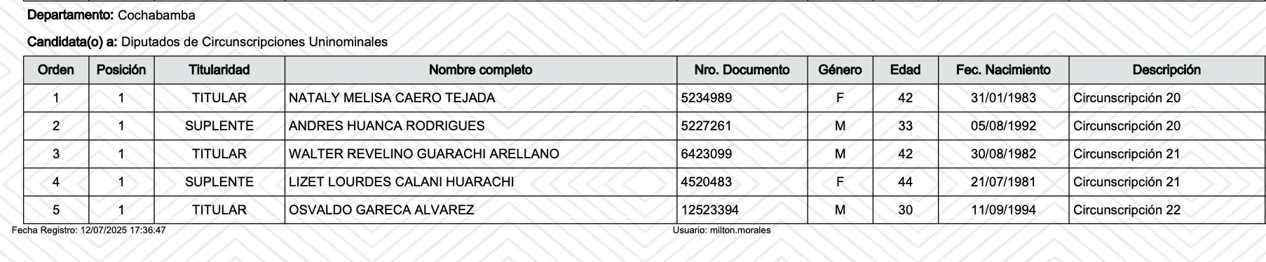 Huanca es candidato a diputado suplente por la circunscripción uninominal número 20 en el departamento de Cochabamba.