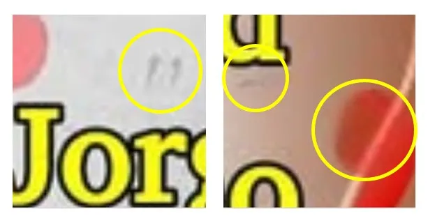 • Se observa una mancha negra, como si hubieran borrado texto del fondo y esto también se lo ve en las comillas.