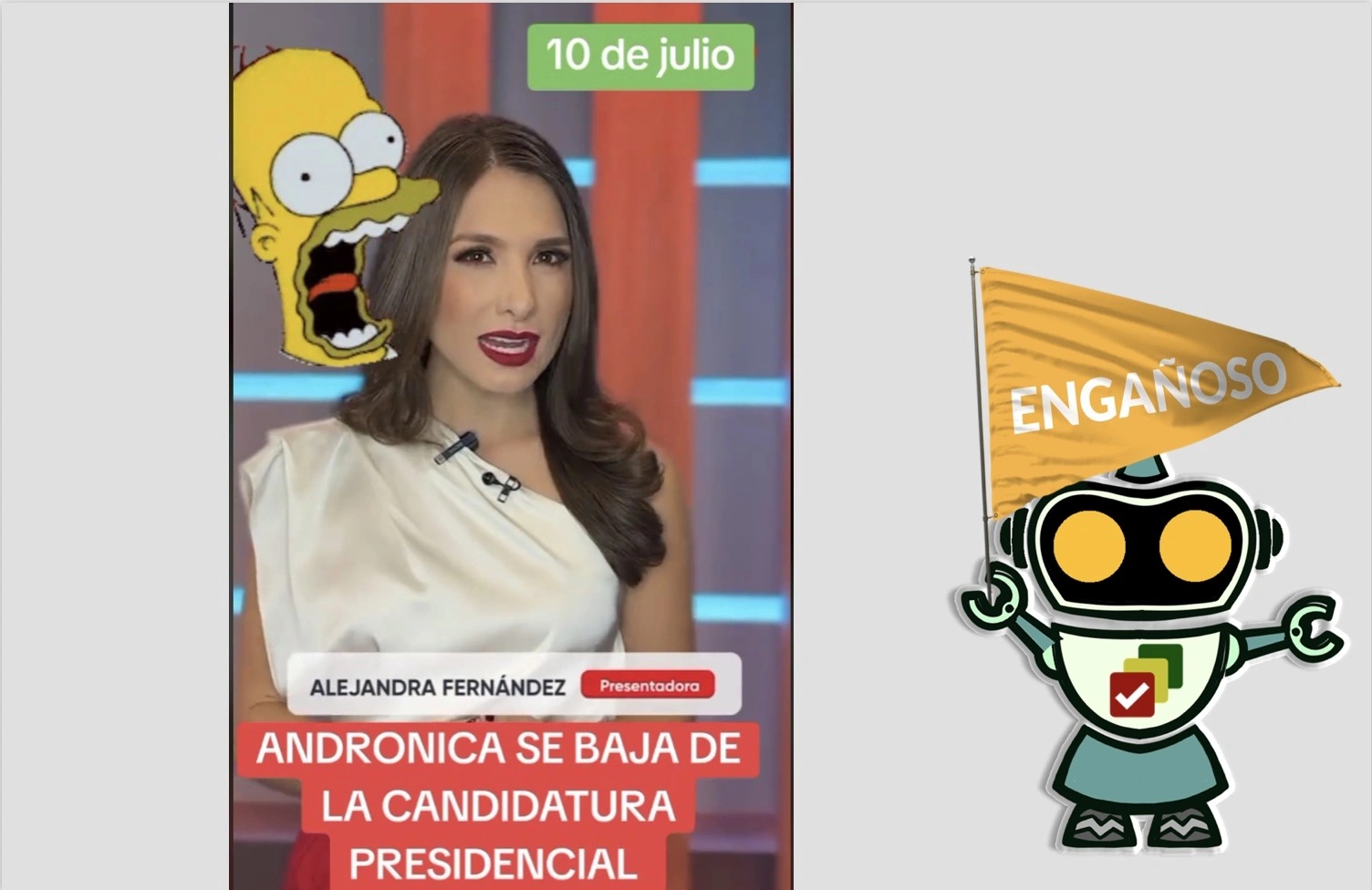 Circula un video manipulado donde la presentadora de Unitel, Alejandra Fernández, anuncia que Andrónico Rodríguez (de Alianza Popular) se baja de la contienda presidencial. Este contenido es engañoso, pues el video original data del pasado 27 de mayo, momento en que el Movimiento del Tercer Sistema (MTS) enfrentaba una impugnación que tiempo después logró resolver.