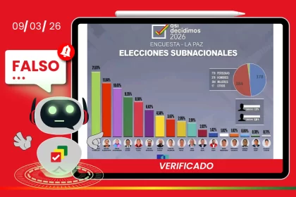 La información es falsa. La encuesta difundida por el medio solo incluyó a La Paz, Cochabamba y Santa Cruz. …