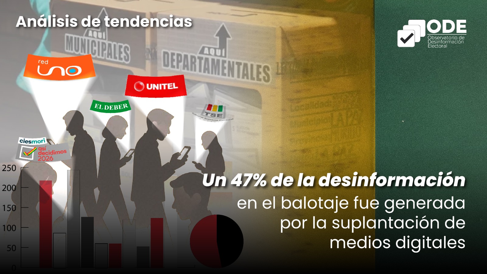 Según el monitoreo realizado por el Observatorio de Desinformación Electoral de Bolivia Verifica (ODE-BV), el 47% del contenido vinculado al proceso empleó esta estrategia, en la que además de inventar información, se combinaron datos haciendo más difícil la detección de bulos.