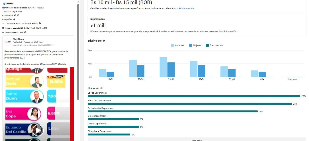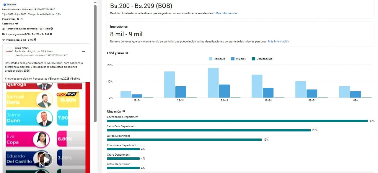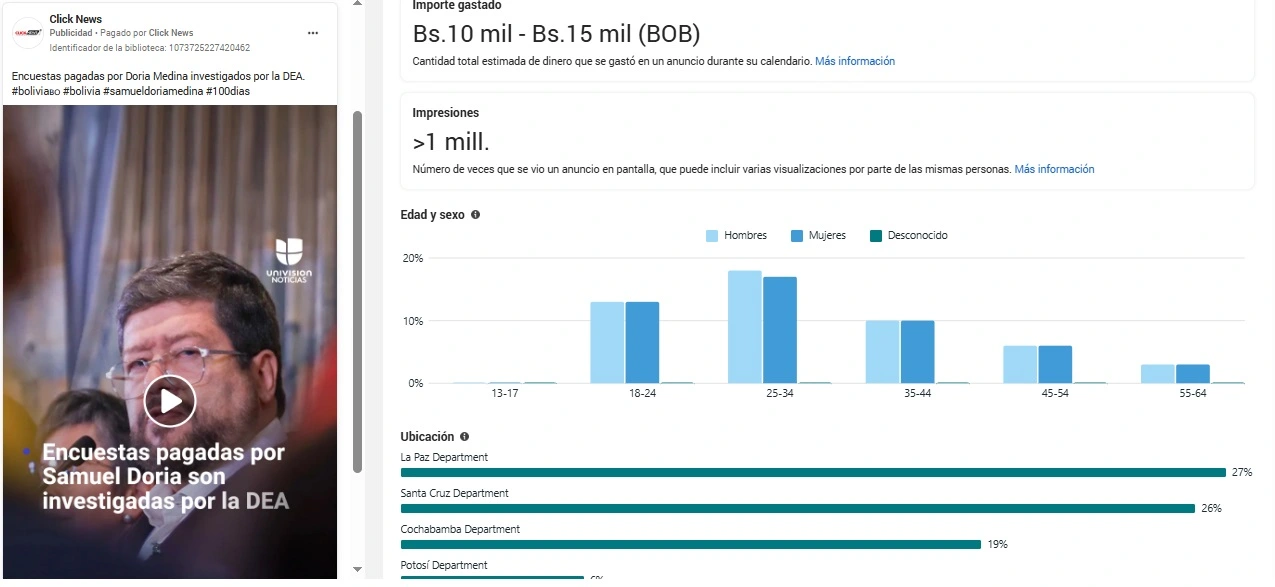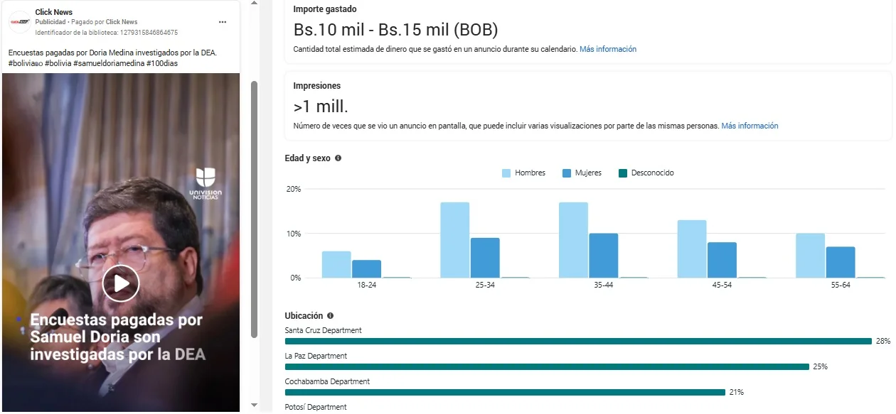 TAGGED:Bolivia NewsClick NewsCochabambaElecciones 2025FacebookinvestigaciónJorge Tuto QuirogapublicidadSamuel Doria Medina