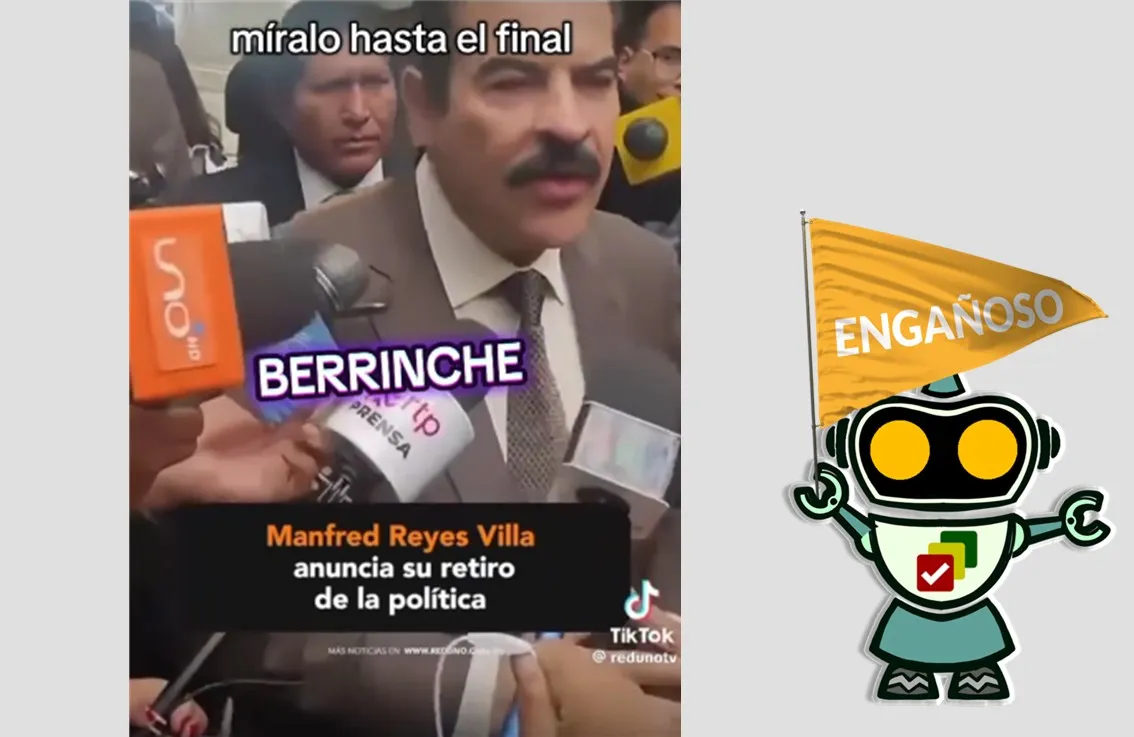 A través de TikTok se hizo viral un video con el sello de Red Uno en el que se ve a Manfred Reyes Villa anunciar su retiro de la política. Sin embargo, el material data de 2023, por lo que es engañoso.