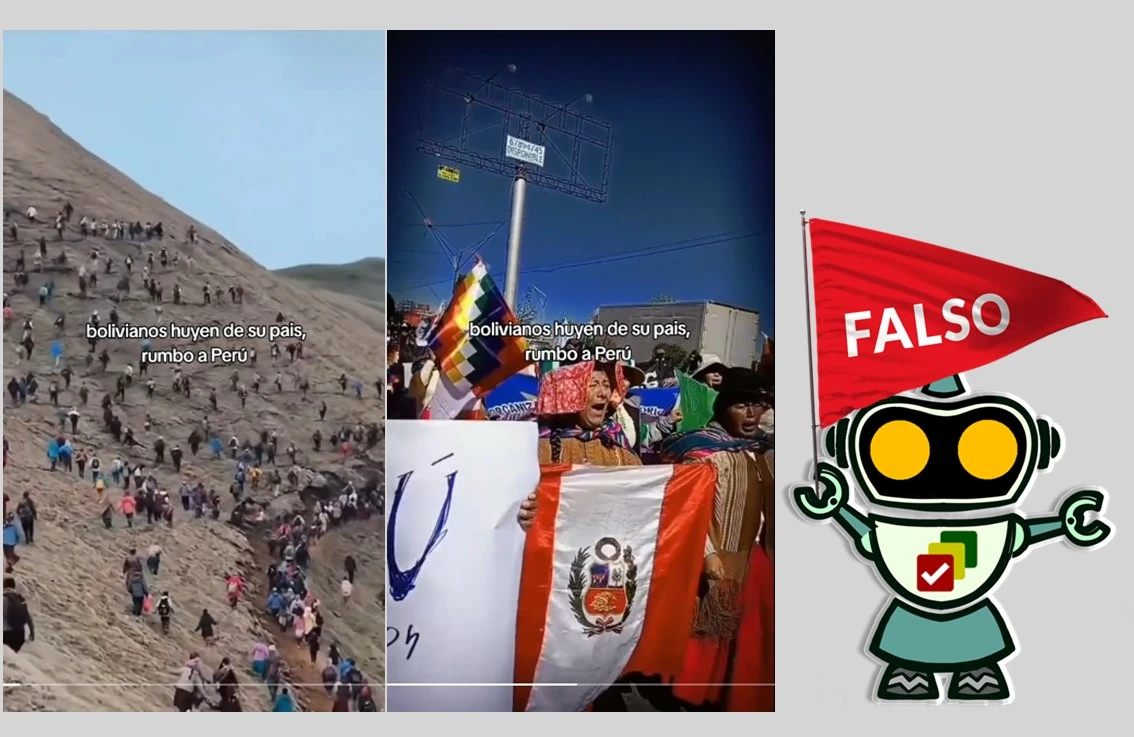 ¿Miles de bolivianos tratan de ingresar por todos los medios a suelo peruano buscando un futuro mejor?, un video compartido en TikTok difunde imágenes de personas caminando por cerros y otras marchando, para dar certeza de esta información, pero es falsa. También, menciona que la presidenta de Perú Dina Boluarte analiza construir un muro en la frontera con Bolivia, pero tampoco es verdad. Las imágenes que muestra el audiovisual están sacadas de contexto.